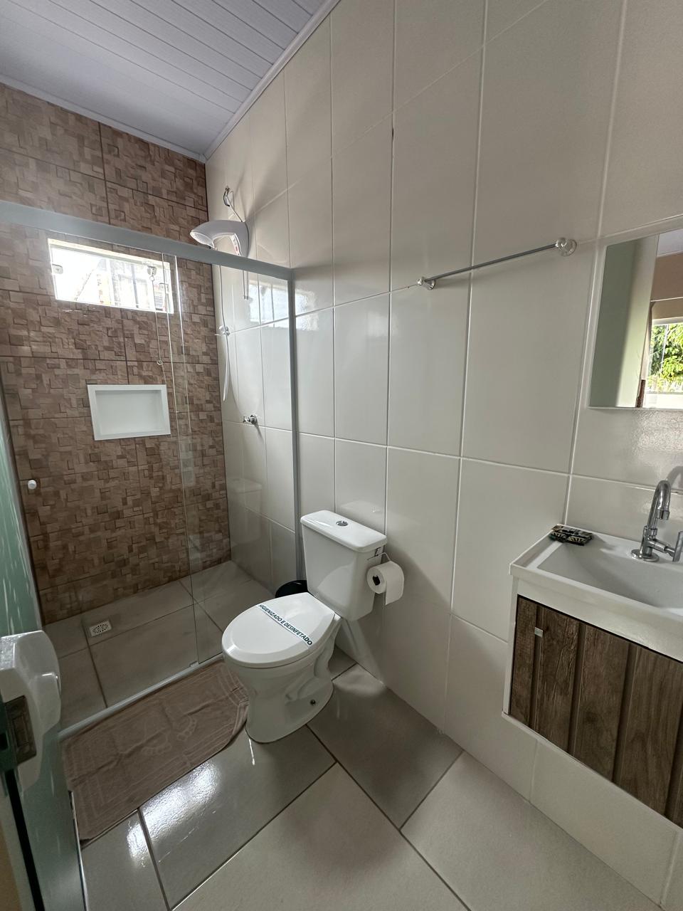 Amplo e bem iluminado, o banheiro privativo garante praticidade e conforto durante a hospedagem.